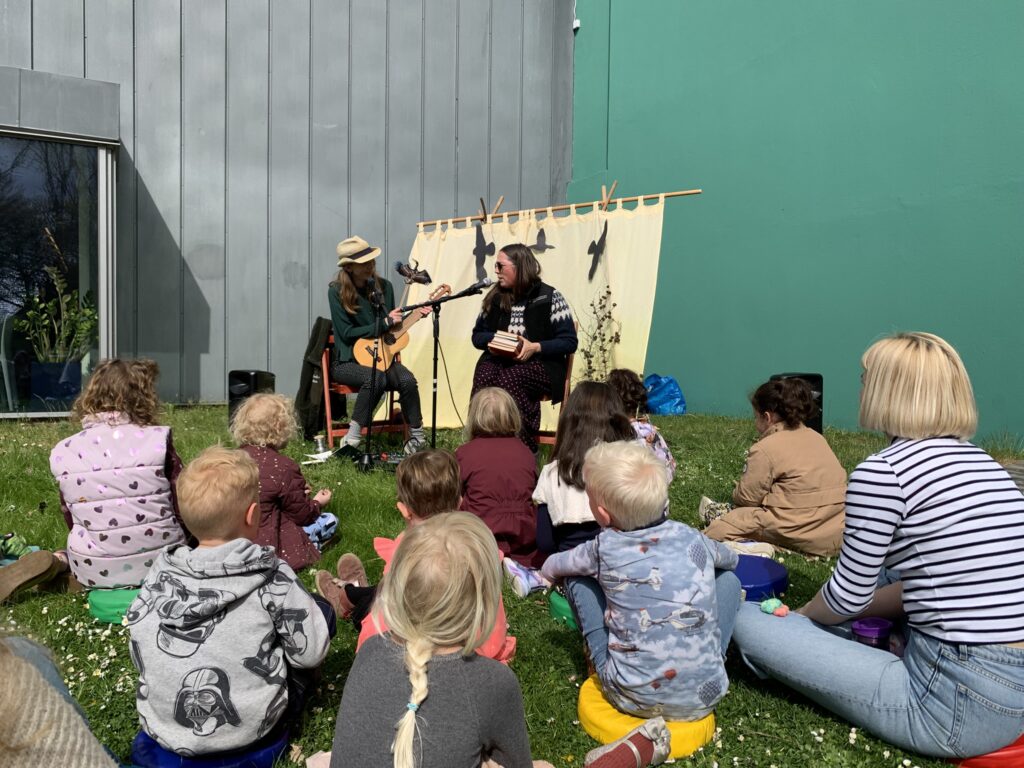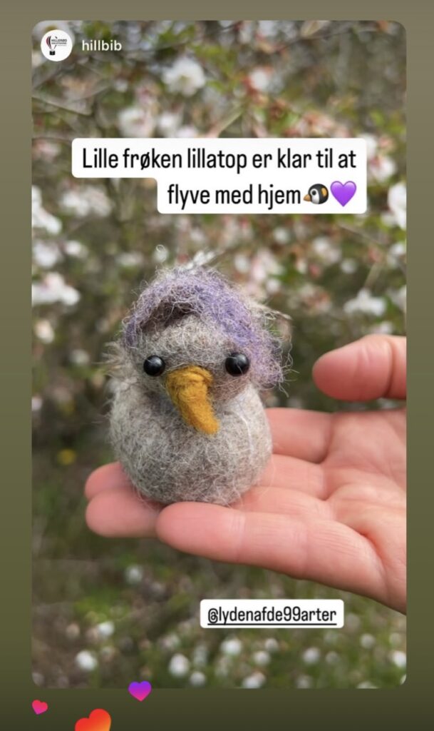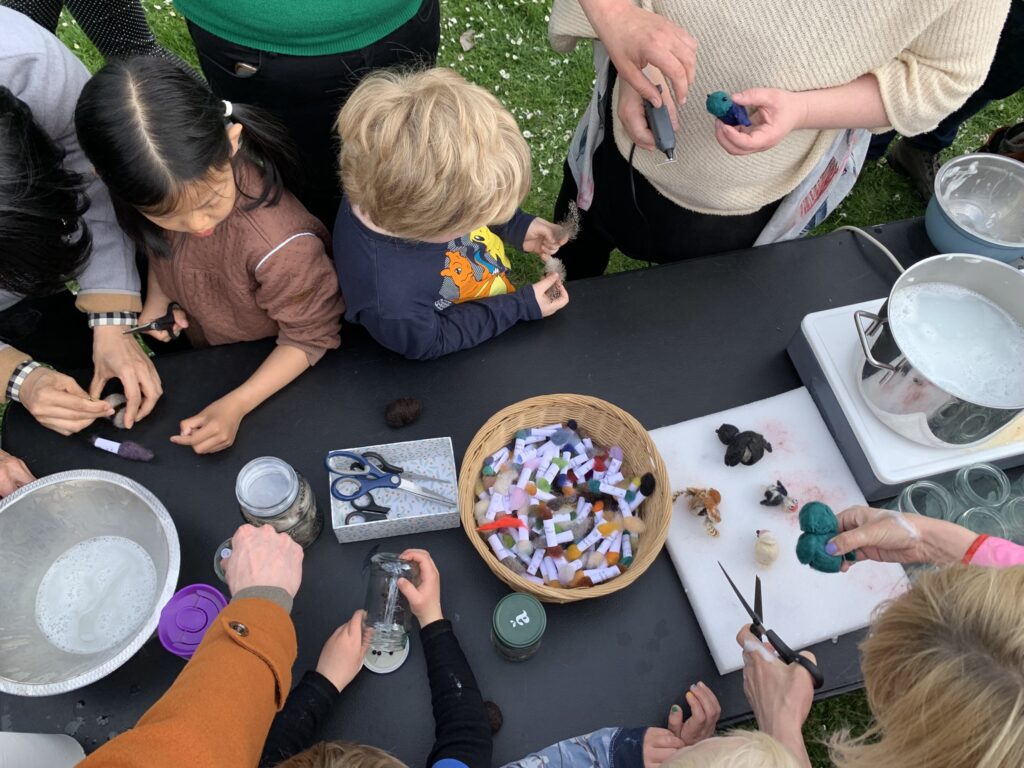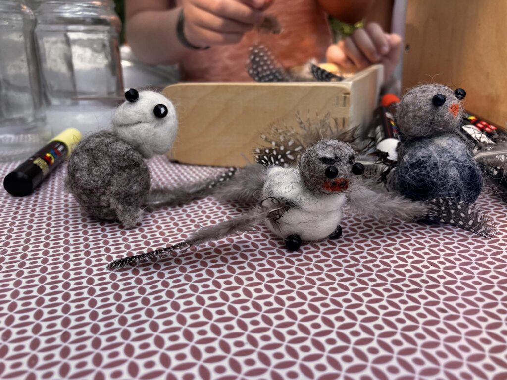 Efterfølgende laver vi sammen med publikum kreativ aktivitet, som fx kan være filtning af fuglene fra fortællingen.